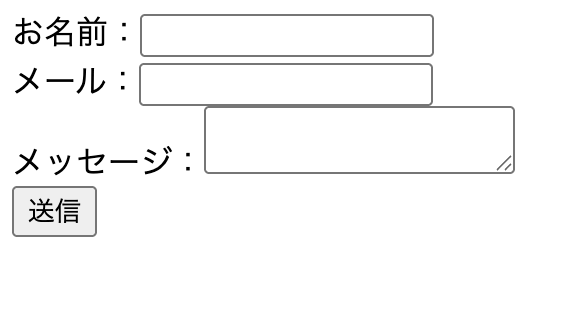 「お名前」「メール」「メッセージ」と入力欄が並び、最後に「送信ボタン」が表示されます。