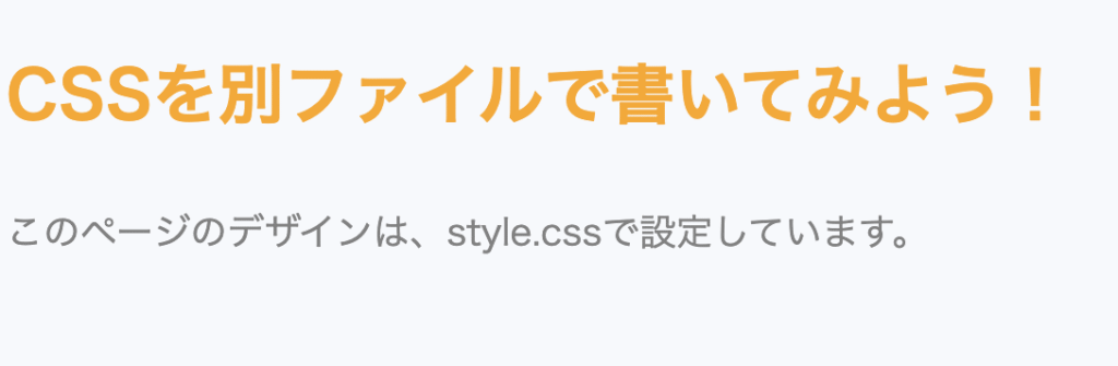<h1>CSSを別ファイルで書いてみよう!</h1>