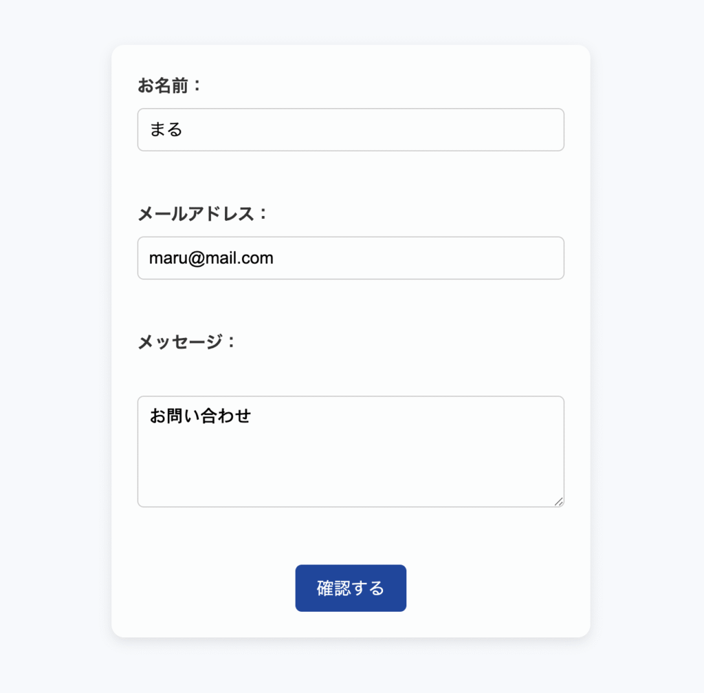 「入力 → 確認 → 送信 → 完了」までの一連の流れを実装できるようになります。