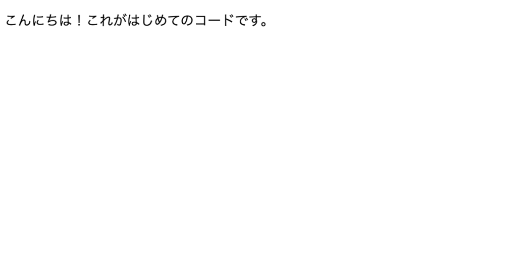 - 下記画像のように「こんにちは!これがはじめてのコードです。」と表示されたら成功!